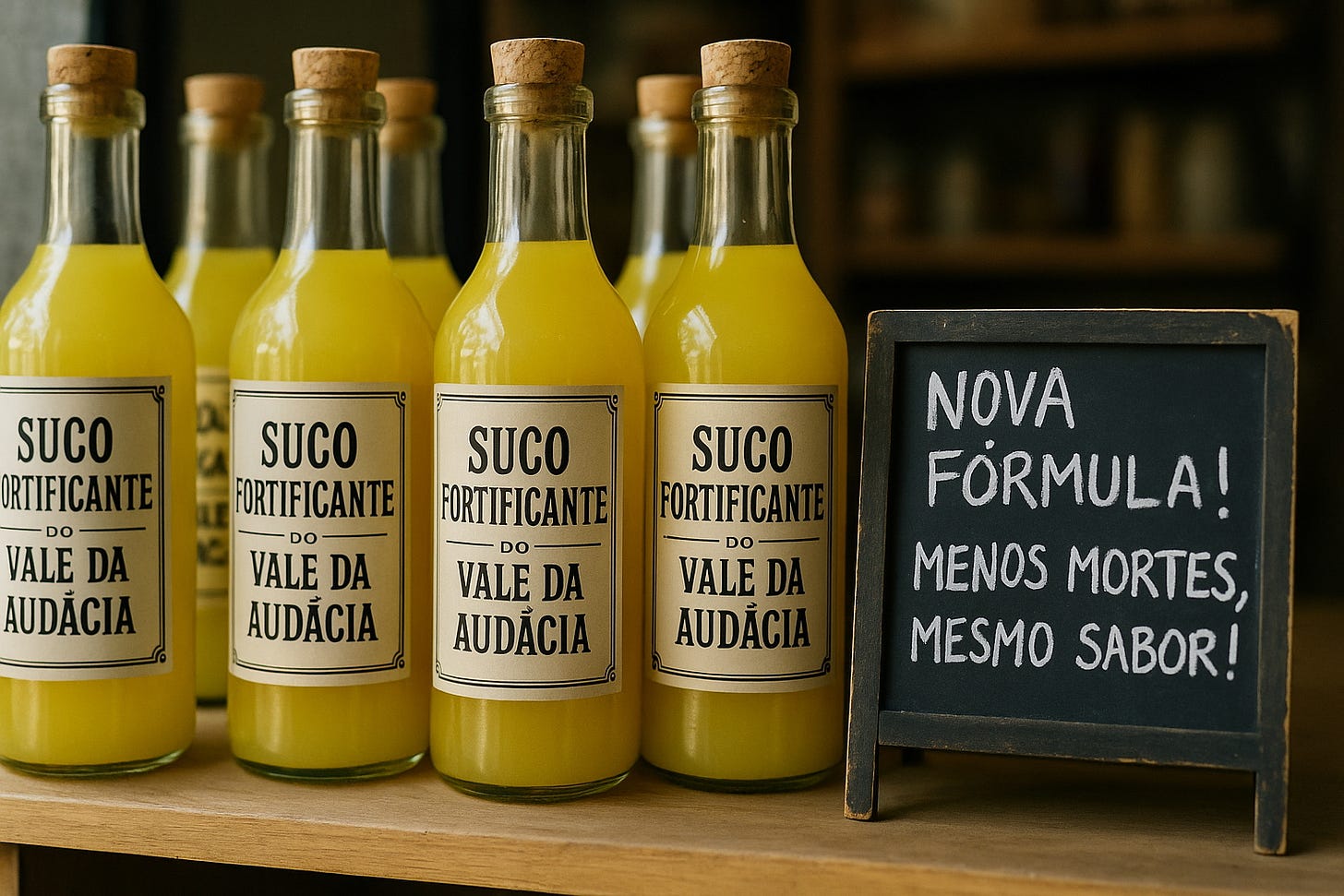 VALE DA AUDÁCIA – Ótima notícia para os entusiastas da embriaguez. Cientistas locais desenvolveram uma nova fórmula para o tradicional Suco Fortificante do Vale da Audácia que promete causar até 8% menos mortes por insuficiência hepática aguda, além de outros benefícios à saúde.